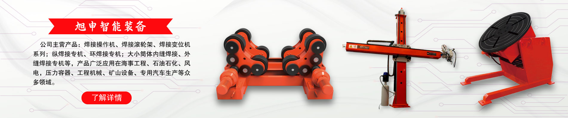 作為焊接自動(dòng)化裝備與涂裝設(shè)備的專業(yè)制造商,旭申公司始終堅(jiān)持“細(xì)節(jié)決定成敗,誠信鑄就未來”的經(jīng)營理念,做一流產(chǎn)品,創(chuàng)一流品牌。 旭申裝備將攜手旭申石化、旭申農(nóng)業(yè)等關(guān)聯(lián)公司一道,產(chǎn)業(yè)報(bào)國、造福社會(huì),為新時(shí)代的裝備制造、節(jié)能環(huán)保做出應(yīng)有的貢獻(xiàn)。